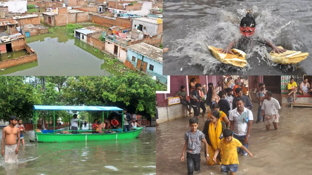मथुरा की गलियों में भरा यमुना का पानी, परिक्रमा मार्ग पर फिर चली नाव